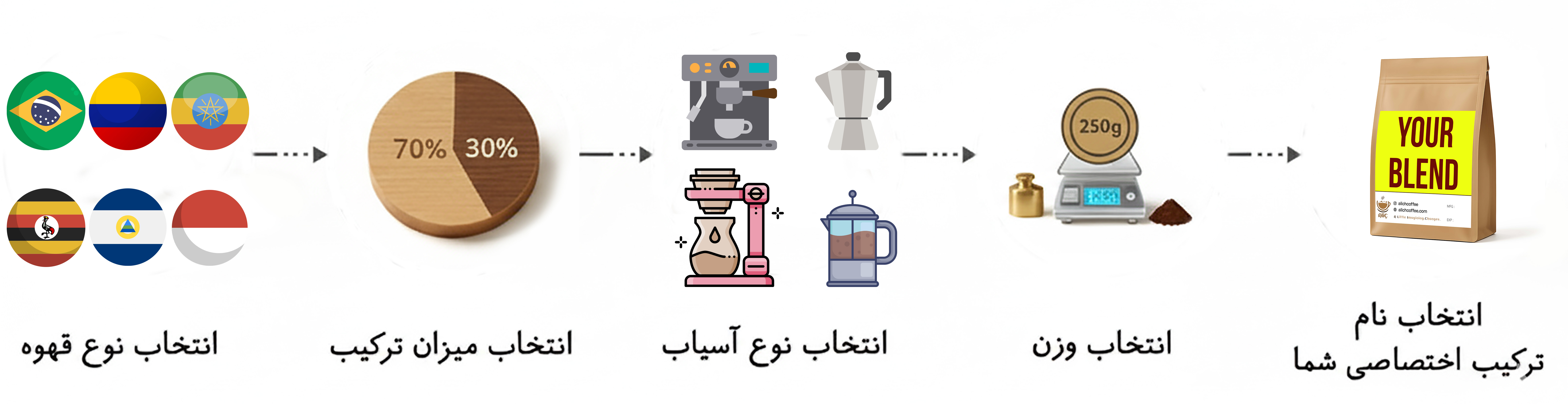 آروما (عطر قهوه) <br/>آجیلی، شکلاتی، با رایحههای شیرین و ملایم <br/>طعم <br/>تلخی ملایم، ترشی کم <br/>طعمیاد <br/>شکلات شیری، فندق، کارامل، گاهی میوه خشک <br/>اسیدیته <br/>پایین تا متوسط <br/>بادی (چگالی - غلظت) <br/>متوسط <br/>میزان کافئین <br/>متوسط